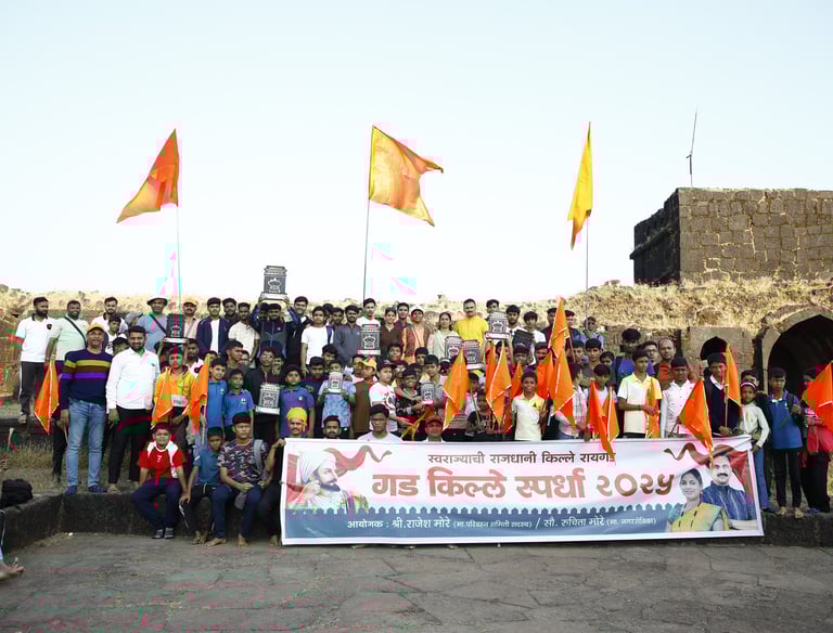 With the aim of spreading the history of Chhatrapati Shivaji Maharaj to as many Shiv devotees as possible, a “Fort Model Making” competition is organized every year on the occasion of Diwali. Participating contestants are taken to a fort each year, where the prize distribution ceremony is held. In the year 2025–26, this program was celebrated with great enthusiasm at Raigad Fort.